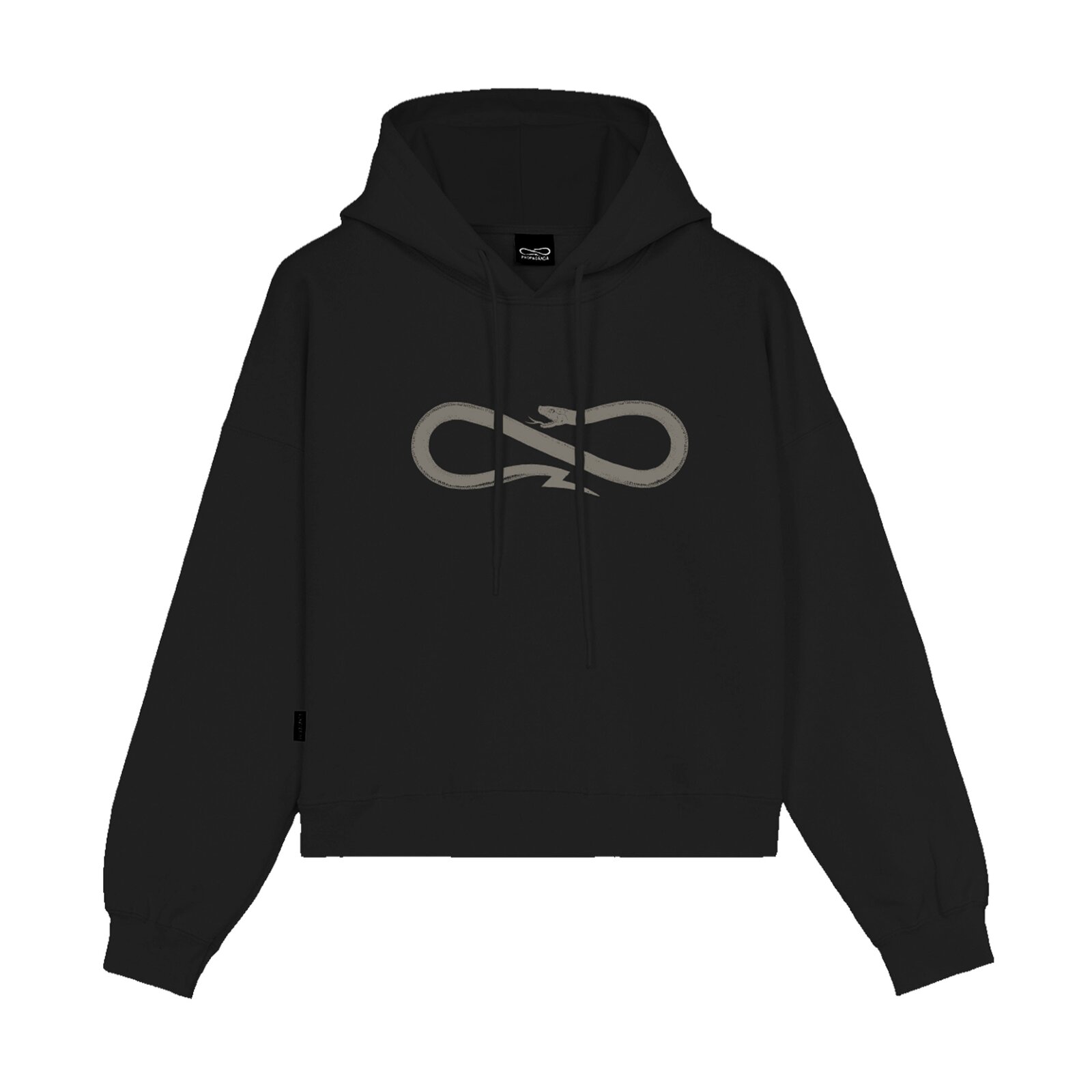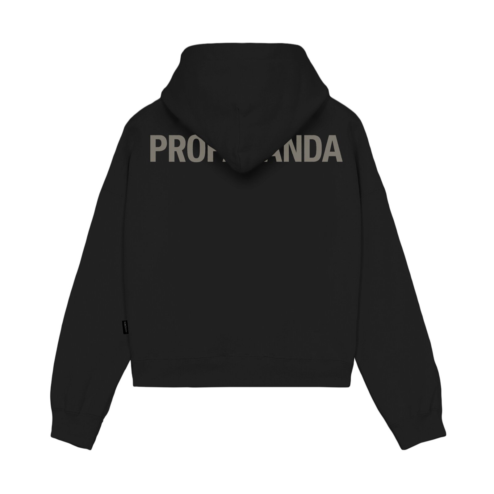 Felpa con cappuccio in Cotone da donna. Cropped fit. Screen print on front and back. Kangaroo pocket. Drawstring at the neck. Ribbed cuffs and hem. Custom flag label at left hip. 100% Cotton. Made in Italy.