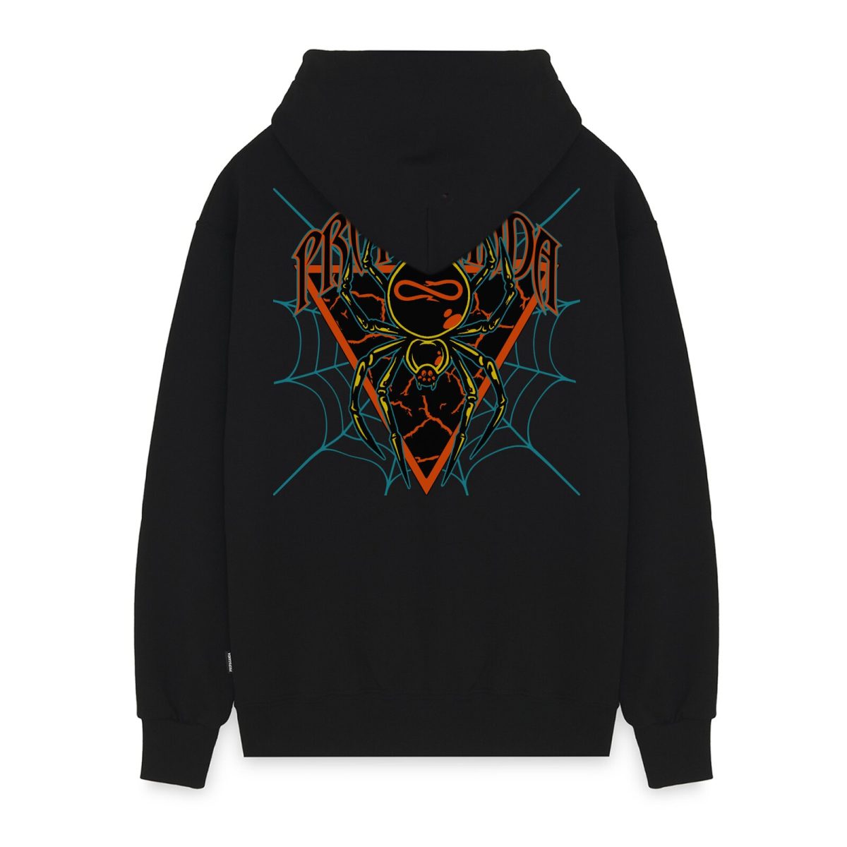 Hooded cotton sweatshirt. Screen print on front and back. Kangaroo pocket. Drawstring at the neck. Ribbed cuffs and hem. Custom flag label at left hip. 100% Cotton. Made in Italy.